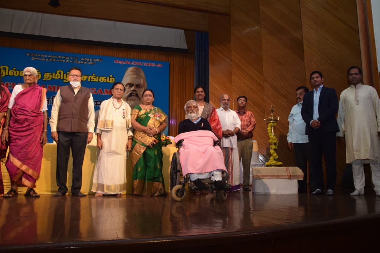 08.11.2021 திங்கட்கிழமை அன்று தில்லித் தமிழ்ச் சங்கத்தில் பத்ம விருதாளர்கள் 105 வயதான, இயற்கை விவசாயத்தில் சாதனை புரிந்த திருமதி பாப்பம்மாள், பேராசிரியர் திரு சாலமன் பாப்பையா, அமர் சேவா சங்க நிறுவனத் தலைவர் திரு எஸ். ராமகிருஷ்ணன், ஓவியக் கலைஞர் திரு மனோகர் தேவதாஸ், கூடைப்பந்து விளையாட்டின் சாதனைப் பெண்மணி திருமதி பி. அனிதா, நாதஸ்வர கலைஞர் கலைமாமணி ஷேக் மஹபூப் சுபானி, நாதஸ்வர கலைஞர் கலைமாமணி திருமதி காலிஷாபி மஹபூப் மற்றும் திருமதி கே.எஸ். ஜெயலக்ஷ்மி ஆகியோருக்குப் பாராட்டு விழா நடைபெற்றது.
