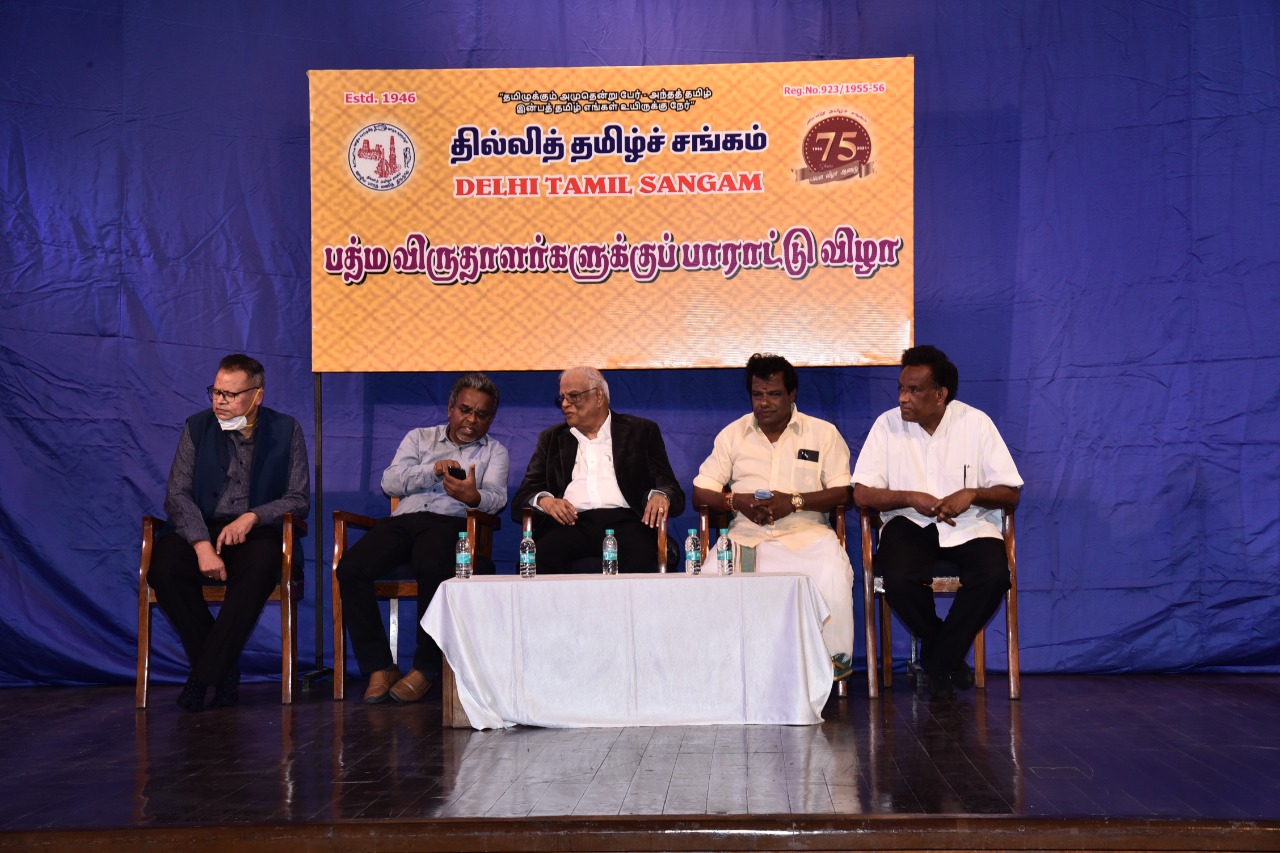 தில்லித் தமிழ்ச் சங்கத்தில் 27.03.2022 அன்று பத்ம விருதாளர்களுக்கான பாராட்டு விழா தலைவர் வீ.ரெங்கநாதன், (இ.கா.ப) பணி ஓய்வு அவர்கள் தலைமையில் நடைபெற்றது.