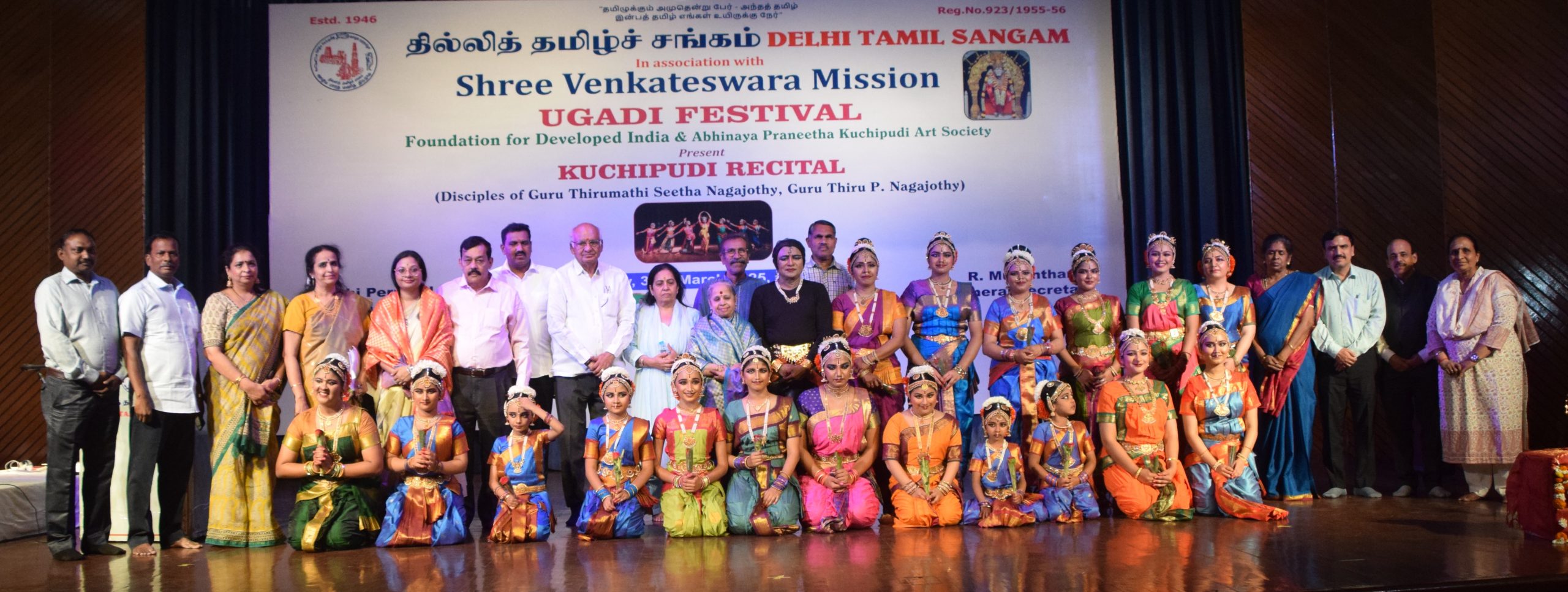 30.03.2025 ஞாயிற்ற்றுகிழமை அன்று தில்லித் தமிழ்ச் சங்கத்தின் ஆதரவுடன் ஸ்ரீ வெங்கடேஸ்வரா மிஷன் இணைந்து நடத்திய யுகாதி விழா மிகச் சிறப்பாக நடைபெற்றது. இந்நிகழ்ச்சியில் குரு திருமதி சீதா நாகஜோதி, குரு திரு நாகஜோதி ஆகியோரின் பவுண்டேஷன் ஃபார் டெவலப்டு இந்தியா, அபிநயபிரணீதா கூச்சிப்பூடி ஆர்ட் சொசைட்டி மாணவியர்களின் ”கூச்சிப்பூடி வைபவம்” நாட்டிய நிகழ்ச்சி நடைபெற்றது.