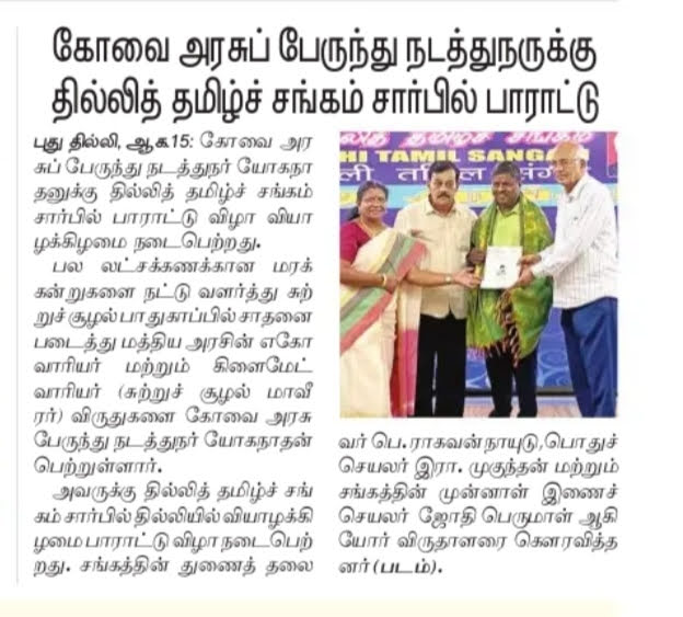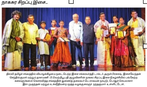 தில்லித் தமிழ்ச் சங்கத்திற்கு “வளர் தமிழ் மாமணி” விருது