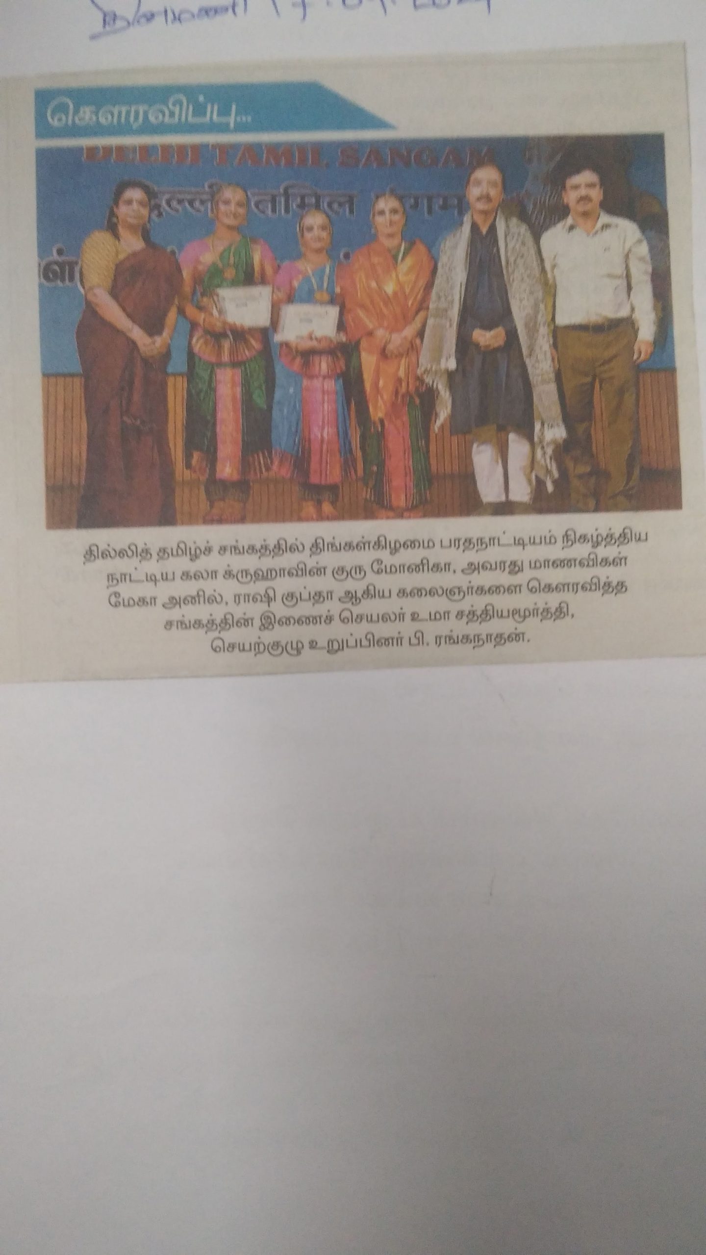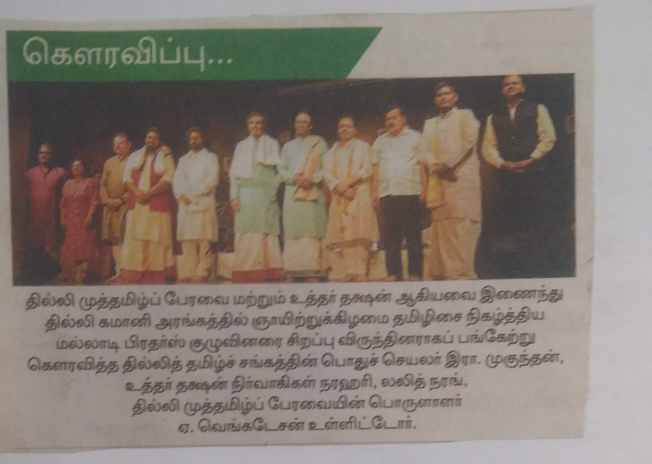 தில்லித் தமிழ்ச் சங்கத்திற்கு “வளர் தமிழ் மாமணி” விருது